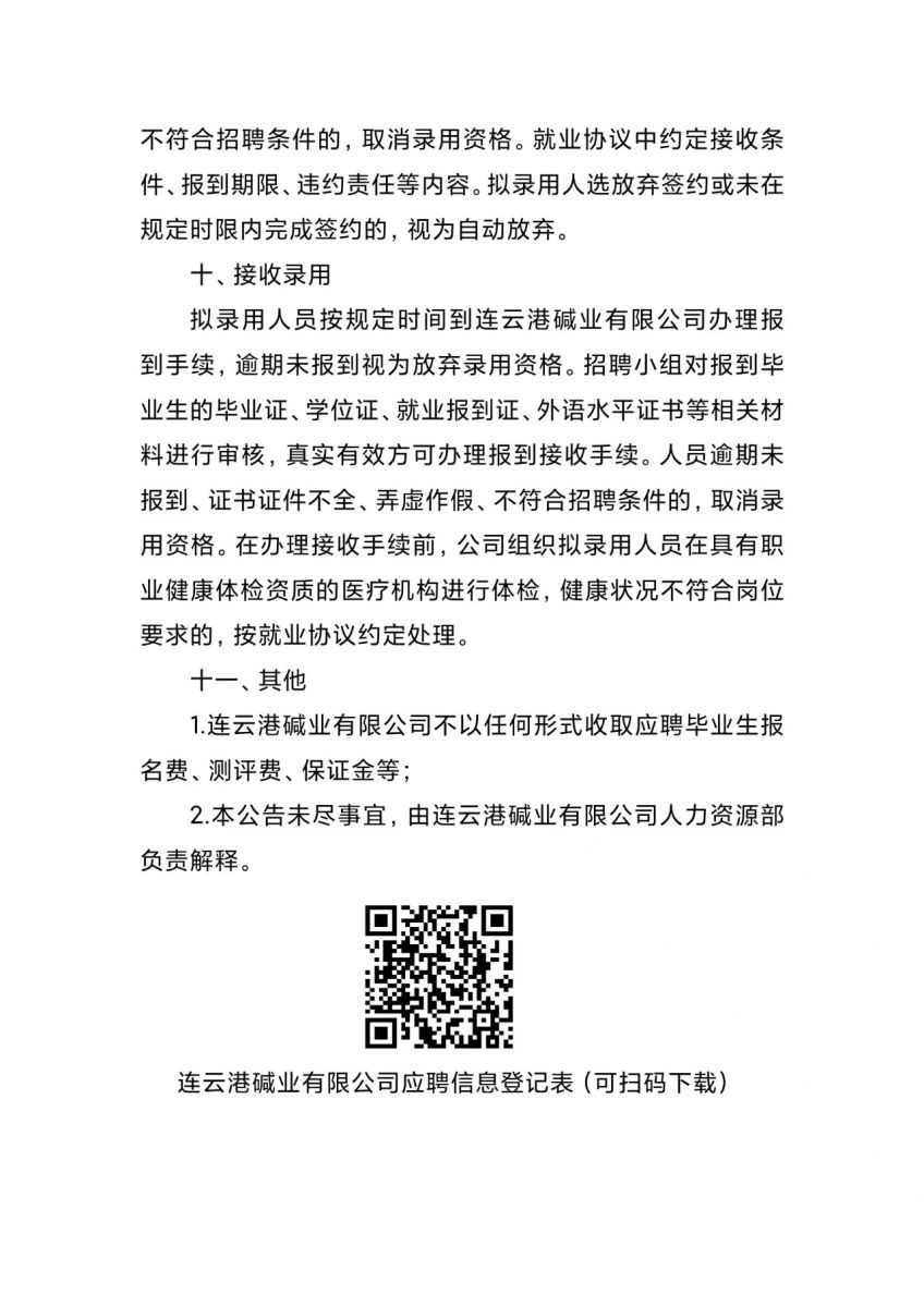 連云港堿業有限公司2026年度招聘簡章