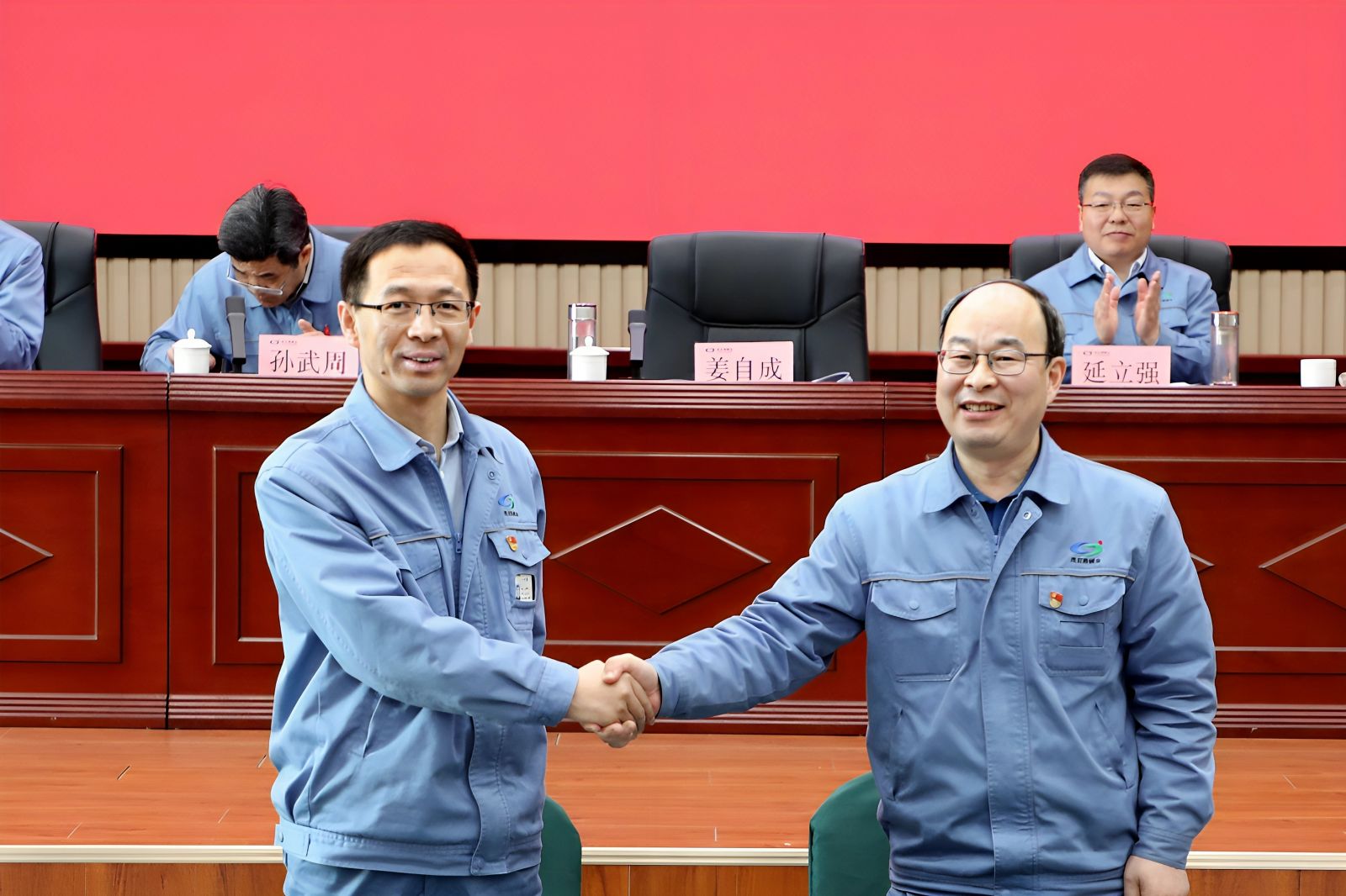 姜自成與公司黨委副書記、工會主席張慶壘簽署了《工資專項集體合同》。