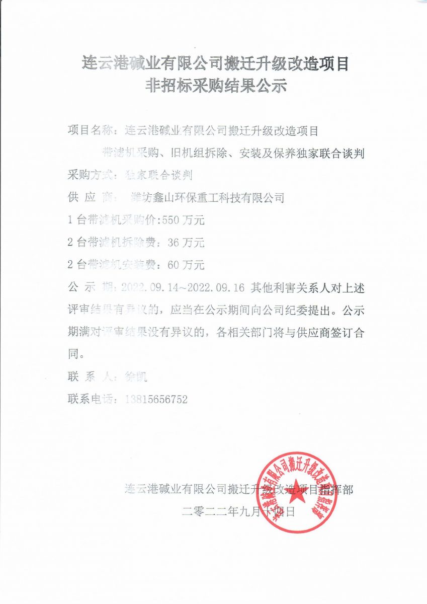 搬遷升級改造項目非招標采購結果公示