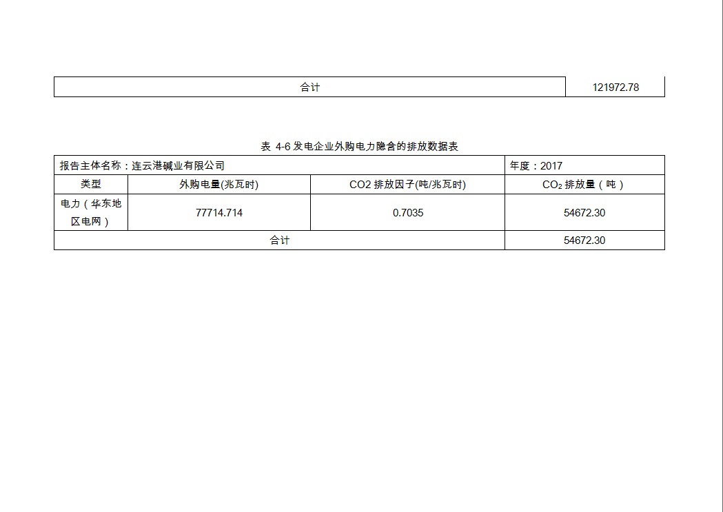 連云港堿業有限公司2017年度溫室氣體排放報告