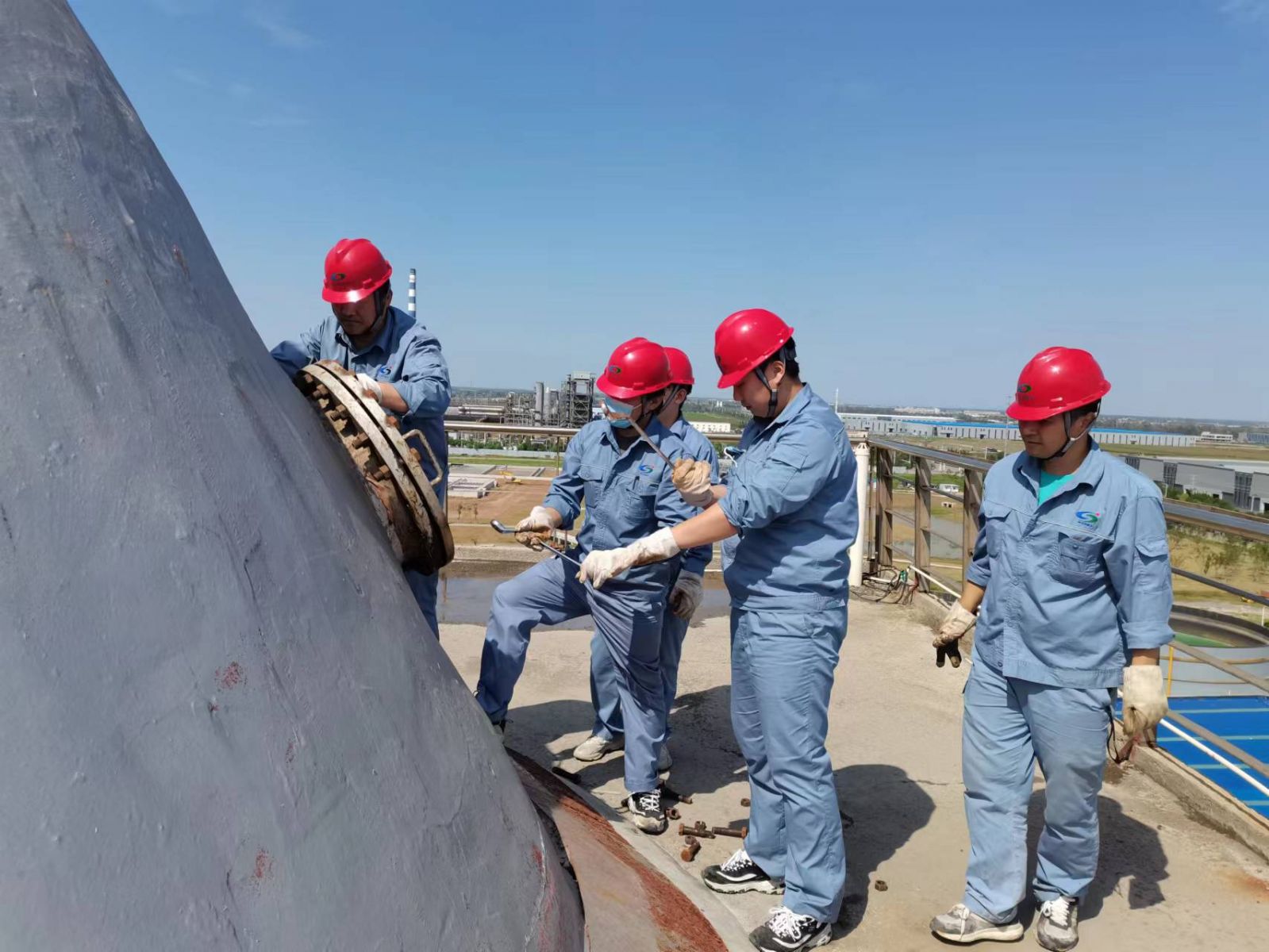 為了保證停車和開車工作的順利進行,停車期間,實習職工主動協助當班人員打開16個人孔,并在實際操作中重點學習設備檢修、清洗的具體操作流程以及消缺重點難點等。檢修結束后又全流程參與16個人孔的封堵流程。“平時員工實習是看不到設備內部結構和檢修全流程的。這次停車檢修消缺,很多設備都可以打開,對大家來說是一次很好的學習機會。通過這次檢修,大家積累了寶貴的檢修經驗。”檢修結束后,大家如是說。